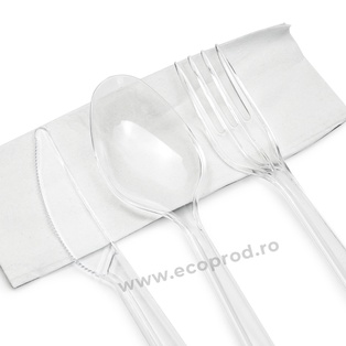 - Tacâmuri de unică folosință cu șervețel – Lingură, furculiță, sau seturi mixte, ideale pentru servirea rapidă și convenabilă a preparatelor. Aceste tacâmuri sunt ușor de utilizat și ambalate igienic, perfecte pentru livrări și servire la pachet.
